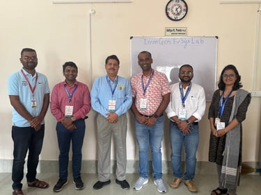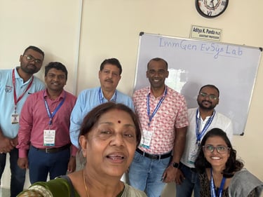 Prof. Bidyut K. Das and Dr. Rina Tripathy from SCB Medical College, Cuttack, visited the ImmGen EvSys Lab, where they interacted with PhD scholars and discussed ongoing research initiatives. Prof. Das, a long-standing advisor and collaborator with the group since 2005, along with Dr. Tripathy, brings extensive expertise in Biochemistry. Their visit facilitated insightful discussions on immunogenetics and experimental systems. The interaction enriched the scholars' understanding of disease mechanisms and advanced research methodologies, further strengthening interdisciplinary cooperation in the study of autoimmune conditions.