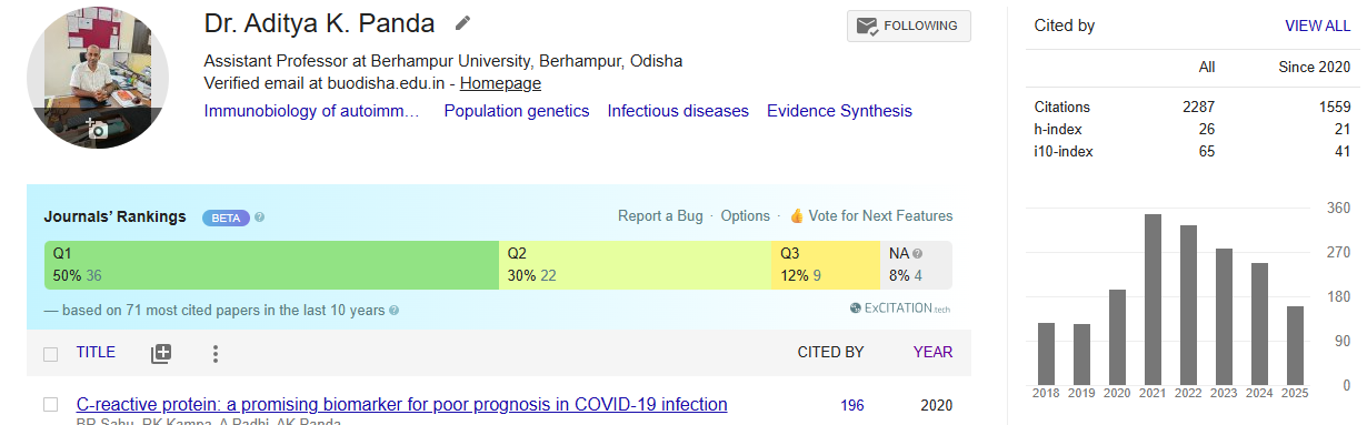 2. Pati A, Nayak N, Sarangi S, Barik D, Kumar Nahak S, Padhi S, Panda AK. CCL5 rs2107538 Variant Is Associated With Protection Against SARS-CoV-2 Infection and Related Mortality: A Population-Based Study. J Infect Dis. 2022;225(10):1865-6.10.1093/infdis/jiac026